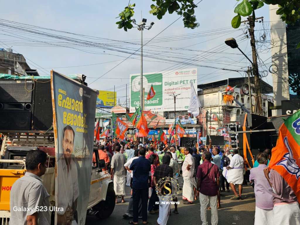 തിരഞ്ഞെടുപ്പ് പ്രചരണം അതിൻറെ അവസാന ലാപ്പിലേക്ക് കടക്കുമ്പോൾ പാലായിൽ തരംഗമായി ഒറ്റ പേര് മാത്രം ഷോൺ ജോർജ് ! ഒറ്റ ചിഹ്നം മാത്രം താമര !. പരസ്യ പ്രചരണത്തിൻ്റെ അവേശകരമായ പരിസമാപ്തി ഇന്ന് പാലാ കുരിശുപള്ളി കവലയിൽ.