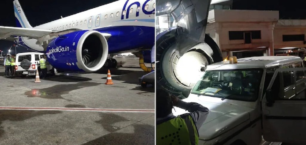 വിമാനത്താവളത്തിലെ പാർക്കിങ് ബേ നമ്പർ 51ലാണ് സംഭവം. 6E 6663 എന്ന വിമാനത്തിനാണ് കേടുപാടുകൾ സംഭവിച്ചത്. കൊൽക്കത്തയിൽ നിന്നും ഗുവാഹത്തിയിലേക്ക് സർവീസ് നടത്താൻ ഷെഡ്യൂൾ ചെയ്ത വിമാനമാണിത്.