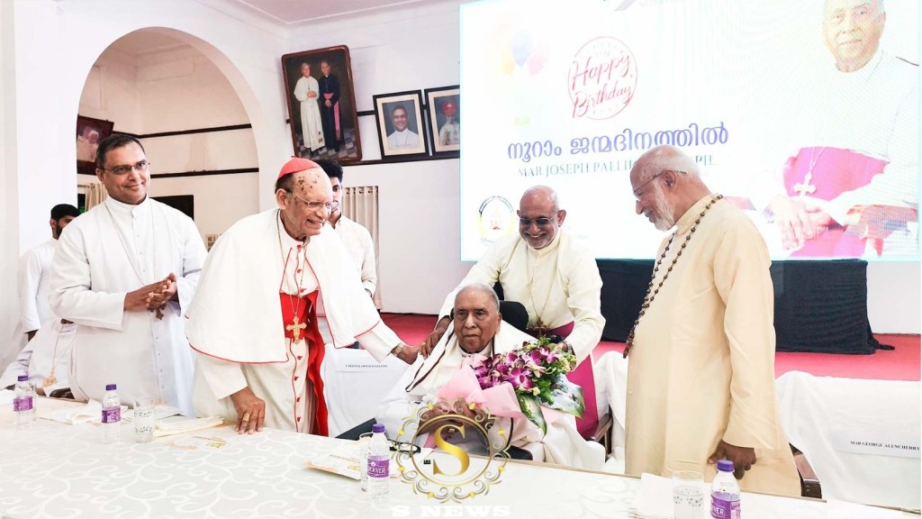 പാലാ: ആഴമായ ആധ്യാത്മികതയുടെ പ്രഭവ സ്രോതസും സഭയെ എക്കാലത്തും വഴിനടത്തിയ നക്ഷത്രവുമാണ് പാലാ രൂപത മുൻ അധ്യക്ഷൻ മാർ ജോസഫ് പള്ളിക്കാപ്പറമ്പിലെന്നും ആ ന ക്ഷത്ര ശോഭയിലൂടെയാണു സഭ സഞ്ചരിക്കുന്നതെന്നും സിറോ മലബാർ സഭ മേജർ ആർച്ച് ബിഷപ് മാർ റാഫേൽ തട്ടിൽ മാർ ജോസഫ് പള്ളിക്കാപ്പറമ്പിലിൻ്റെ 100-ാം ജന്മദിനത്തോടനുബ ന്ധിച്ച് പാലാ ബിഷപ്റ ബിഷപ്സ് ഹൗസിൽ ചേർന്ന അനുമോദന സ മ്മേളനത്തിൽ അധ്യക്ഷത വഹിക്കുകയായിരുന്നു അദ്ദേഹം. പാ ലാ രൂപത സിറോ മലബാർ സഭയ്ക്ക് എക്കാലത്തും മാതൃകയാ ണെന്നും മാർ തട്ടിൽ പറഞ്ഞു.